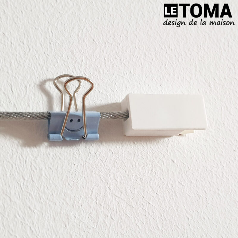 IDEAL FÜR HELLE WÄNDE – Die weißen Abdeckungen kaschieren die schwarzen Seilhalter mitsamt den Nägeln und sorgen für ein cleanes Design